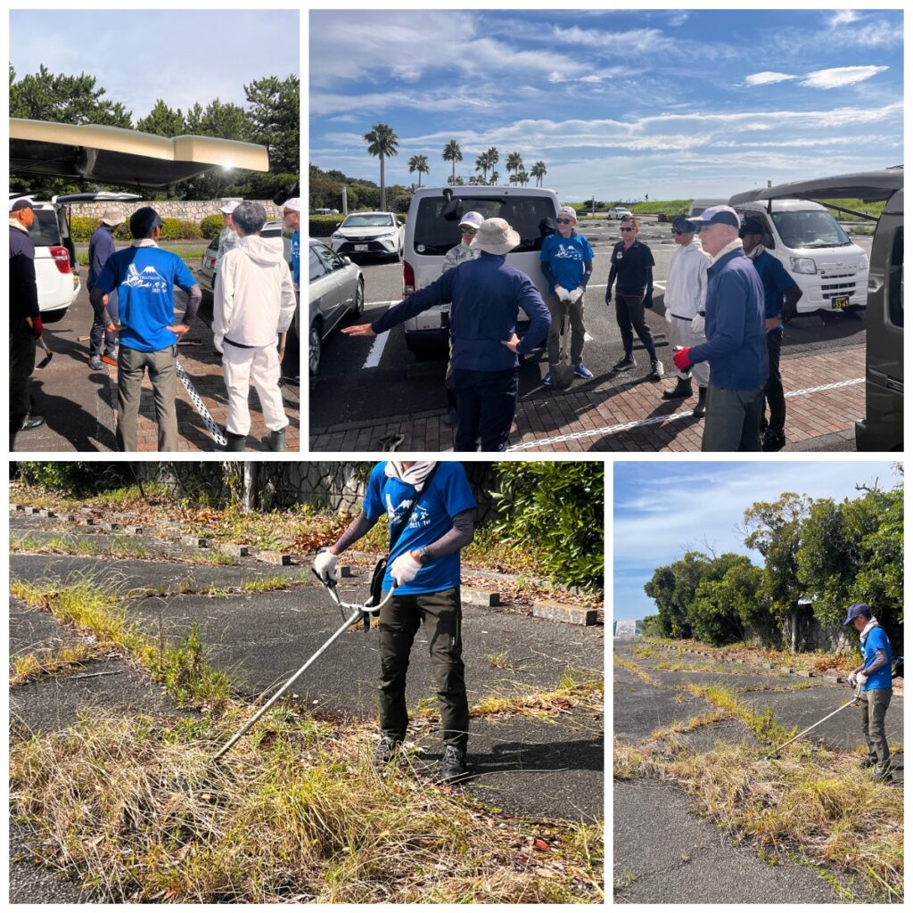 コースや駐車場の草刈りは思ったより広範囲!3時間弱行いましたが、熱中症になりそうなくらいでした。